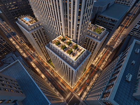 Developers will convert 624,000 square feet of vacant office space into 386 units of studios, one- and two-bedrooms. The building also will feature 92,000 square feet of commercial space leased to food and beverage operators, a small-format grocer and a health and fitness club. Completion is slated for summer 2027. SCB is the Chicago-based architect.