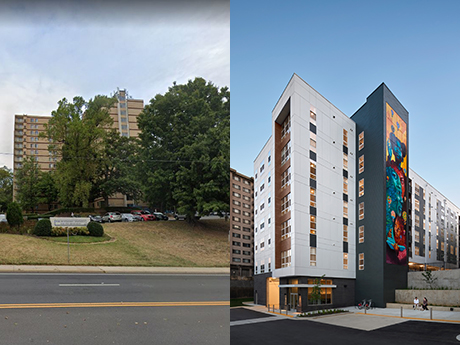Before-and-after images of Park Montgomery in Silver Spring, Md., a LIHTC redevelopment project that created 76 units of affordable housing. (Images courtesy of Soto Architecture & Urban Design)