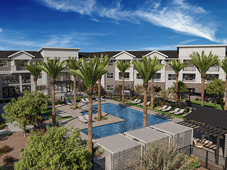 MESA, ARIZ. — Locally based Evergreen Devco has broken ground on The Homestead at Lehi, a $62.5 million, 222-unit community in Mesa. Completion is slated for August 2027. The development team includes MT Builders, BMA Architecture, Atwell (engineering services) and Collaborative V (landscape architect and land planning). The three-story garden-style property will feature one- and two-bedroom units averaging 922 square feet and amenities such as a hot tub, a fitness center, a dog park, coworking space and electric vehicle charging stations.