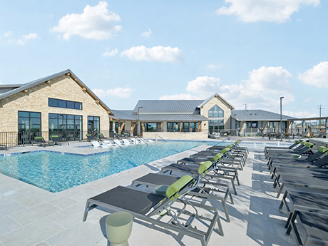 SAN MARCOS, TEXAS — Woodfield Development has completed initial units, and residents have begun moving into, Strait & Nelson, a 360-unit community in San Marcos. Construction is slated to be fully complete by this summer. The project team included architect Dwell Design Studio, ChalkLine General Contractor and Thrive Interior Design. Strait & Nelson consists of one-, two- and three-bedroom units and a clubroom with an entertainment kitchen and beer taps, a coworking lounge with private offices and conference rooms and a resort-style pool complemented by a courtyard and outdoor gathering spaces. Other feature amenities include a fitness center with dedicated yoga and group exercise spaces, pickleball and sand volleyball courts, a gaming lounge, two dog parks, bike storage and electric vehicle charging stations.