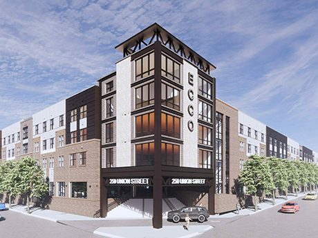 Phase I, known as Vinty, is a 267-unit property that was completed in 2022. ECCO, located at 250 Union St. about a block from Vinty, is slated for completion in late 2027 and will include 258 studio, one- and two-bedroom units. Amenities include a fitness center, game room and wet bar, a golf simulator, coworking space, a resort-style pool, an outdoor theater and more. The architect for the project is Baker Barrios out of Tampa, Florida. The general contractor is March Associates based in Wayne, New Jersey. The civil engineer is Lyndhurst, New Jersey-based Neglia Group.