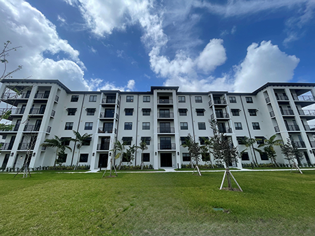 HALLANDALE BEACH, FLA. — Miami-based developer 13th Floor Investments has completed the first two residential buildings in its Parks at Hallandale project in Hallandale Beach and obtained a temporary certificate of occupancy allowing the first residents to move into the property. The community offers a mix of studio through three-bedroom floor plans across what will be seven residential buildings on a 15.5-acre site. The remaining five buildings are expected to be complete by this summer. Unit size ranges from 600 to 1,400 square feet, while monthly asking rents begin at $2,125 and go up to $4,215. At full buildout, the community will comprise 398 apartments, 6,500 square feet of ground-floor retail and a standalone retail building.