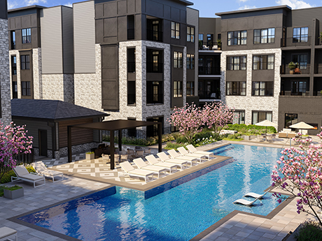 OVERLAND PARK, KAN. — Thompson Thrift has begun construction of Canopy Flats, a 303-unit property in Overland Park, located in the Kansas City metro area. Completion is slated for 2027. Canopy Flats is situated on a 13-acre site. Units will be comprised of one-, two- and three-bedroom floor plans. Amenities feature a fitness center with a sauna and cold plunge, a golf simulator, billiards, shuffleboard, a putting green, a heated pool, an outdoor movie wall, grilling stations, a dog park and spa and a conference room with screenshare and video conference technology.